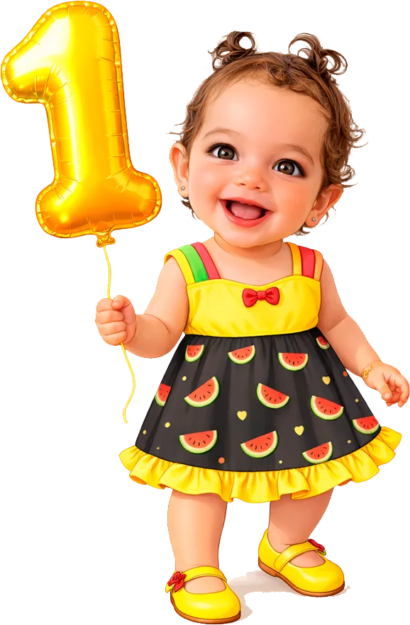 Cria um mascote corpo inteiro usando a foto da criança, perfeito para totem de chão, display de mesa e decoração principal da festa.