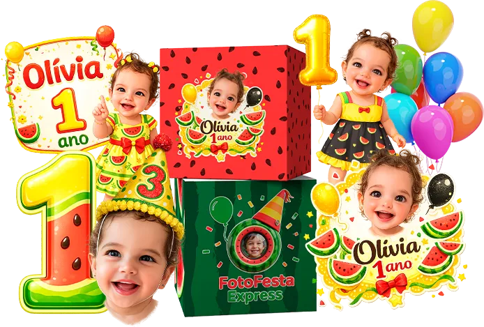 10 prompts mágicos que transformam qualquer foto de criança em topos de bolo, bandeirinhas, mascotes e decoração completa de festa. Tudo personalizado com o rostinho do SEU filho.